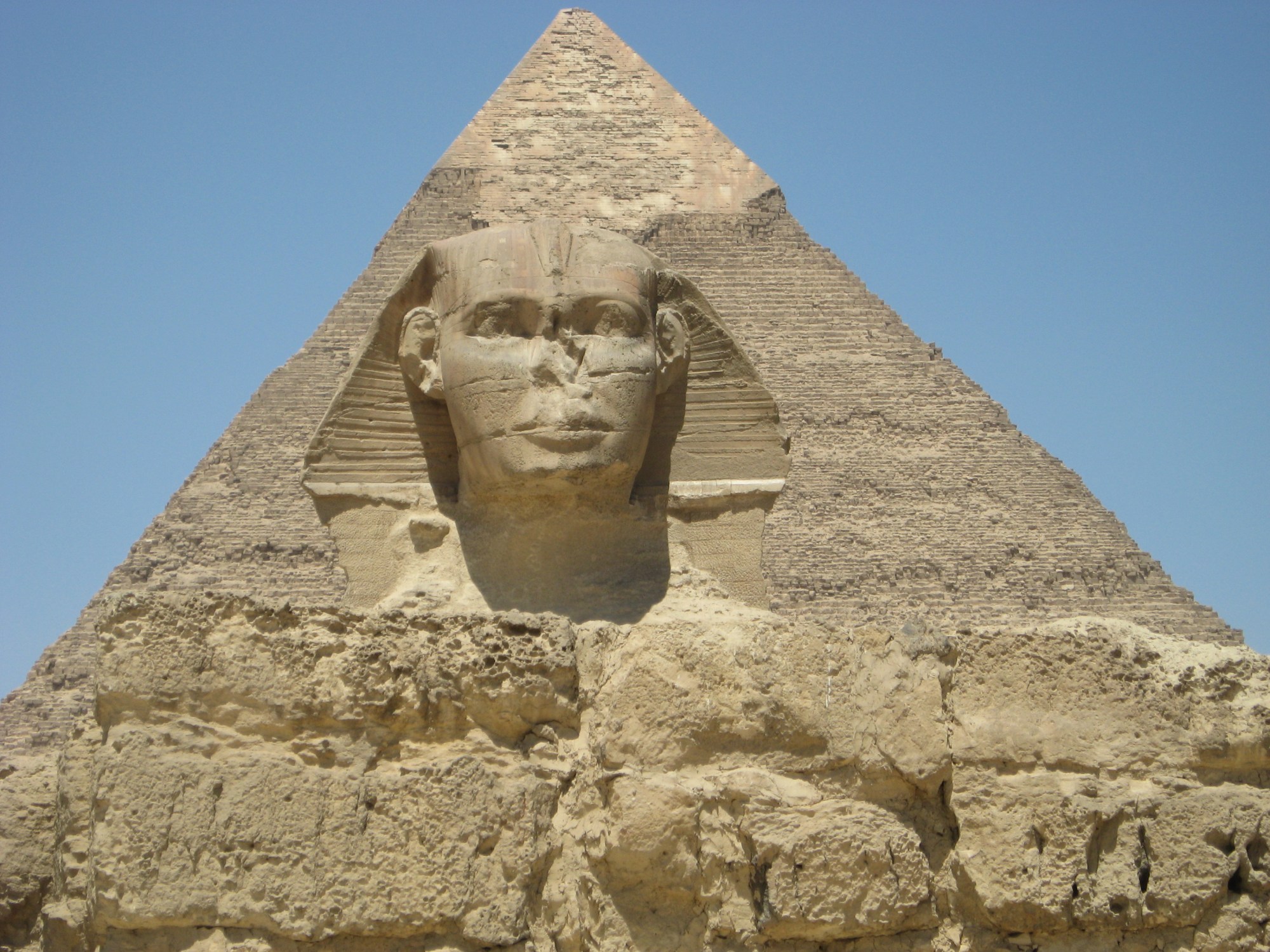 The Sphinx with Khafre’s Pyramid in the background.